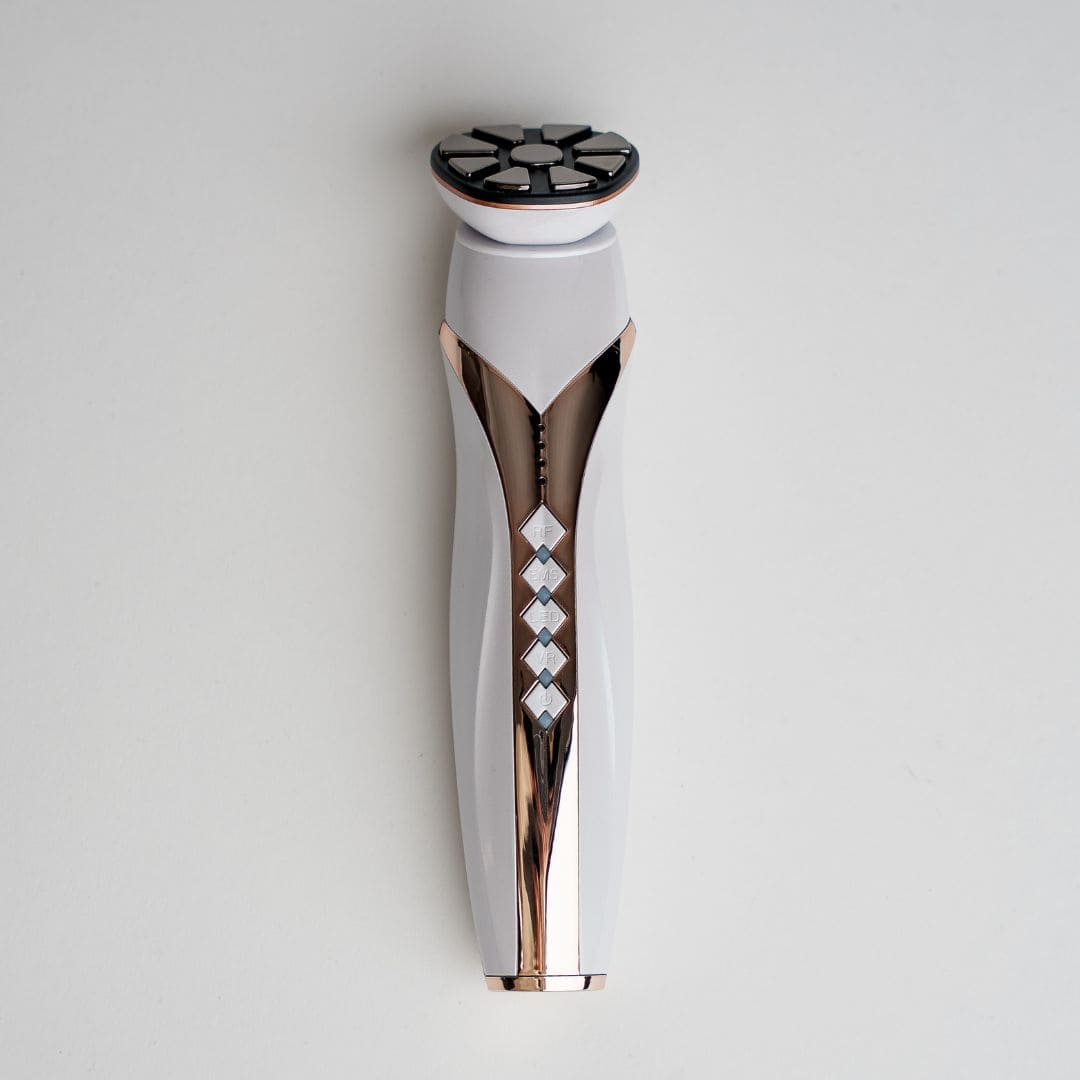 Age Booster Glow er udviklet til at bringe dokumenteret, kosmetisk teknologi ind i dit hjem – uden at gå på kompromis med effektiviteten. I stedet for dyre og tidskrævende klinikbesøg, får du adgang til fire anerkendte teknologier, som også bruges i professionel hudpleje: RF (radiofrekvens), EMS (elektrisk muskelstimulation), LED-lys og VR (mikrovibration).